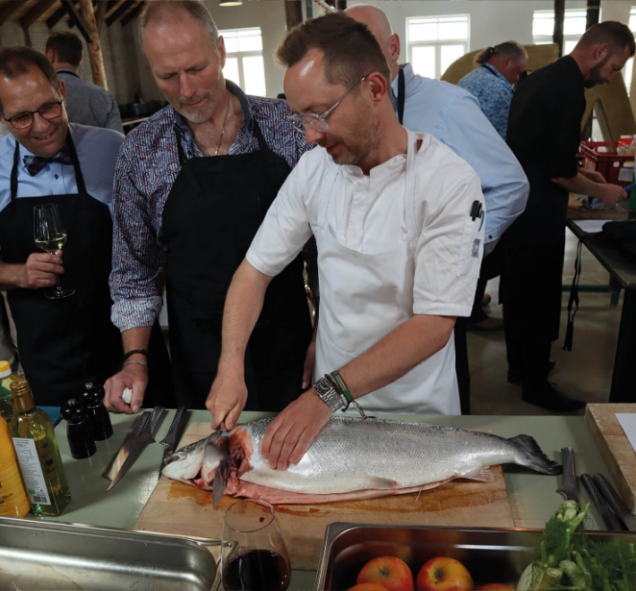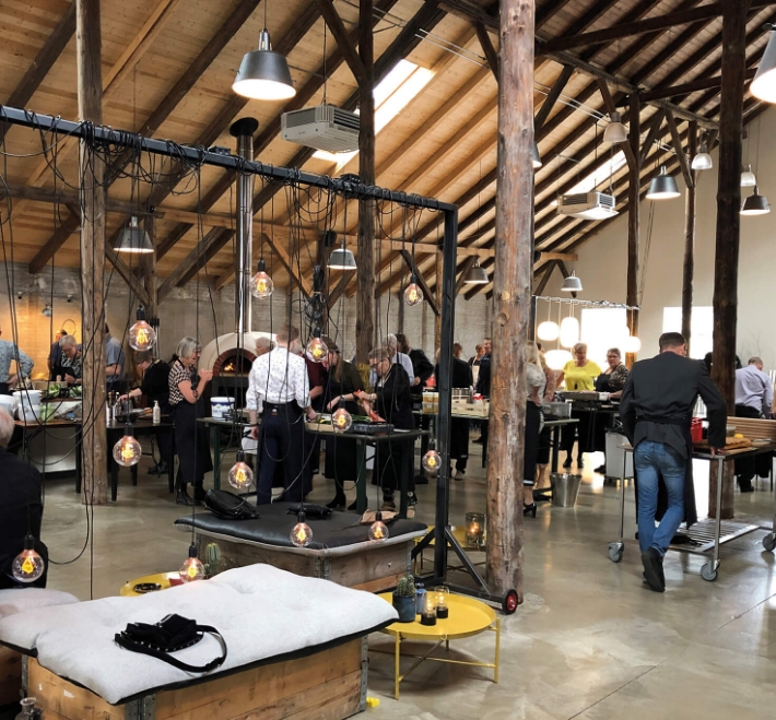 Vi har mange idéer til, hvordan dagen gøres ekstra spændende. En af dem er at tilkøbe en skræddersyet kokkeskole, som giver et sjovt afbræk i arbejdsdagen og samtidig ryster alle sammen. Sammen om teambuilding. Eller prøv vores pizzaskole – et populært valg, hvor vi sammen bager pizza i vores store pizzaovn.