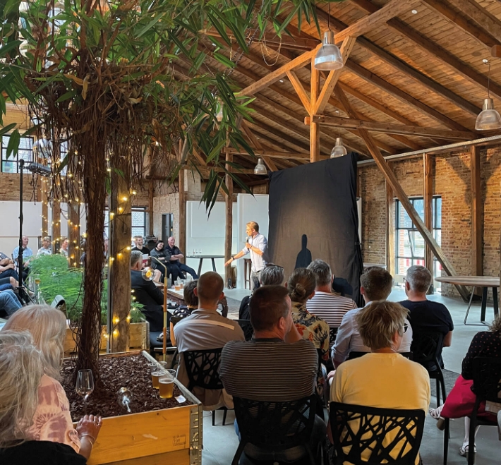 Med et hus på ca. 550 kvm. har vi plads til 150+ personer. Men vores lokale er sådan indrettet, at det kan deles ind i mindre og mere intime områder. Perfekt til, når I kommer færre personer eller har brug for at dele jer op i mindre grupper i løbet af en konference eller et heldagsmøde.